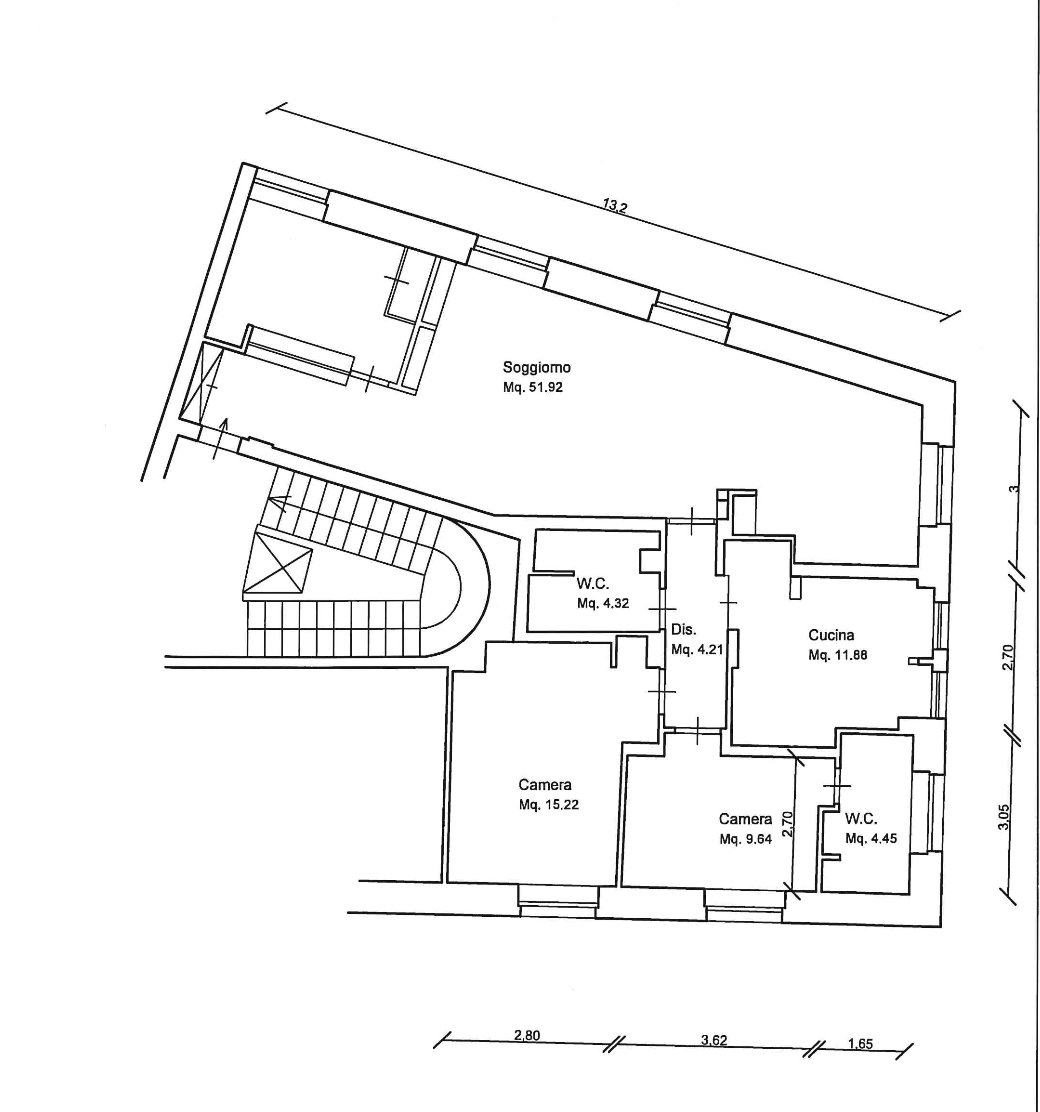 L'appartamento si distingue per la suddivisione funzionale degli ambienti, resa possibile dalla presenza di numerose finestre che garantiscono grande luminosità e flessibilità nella disposizione degli spazi.