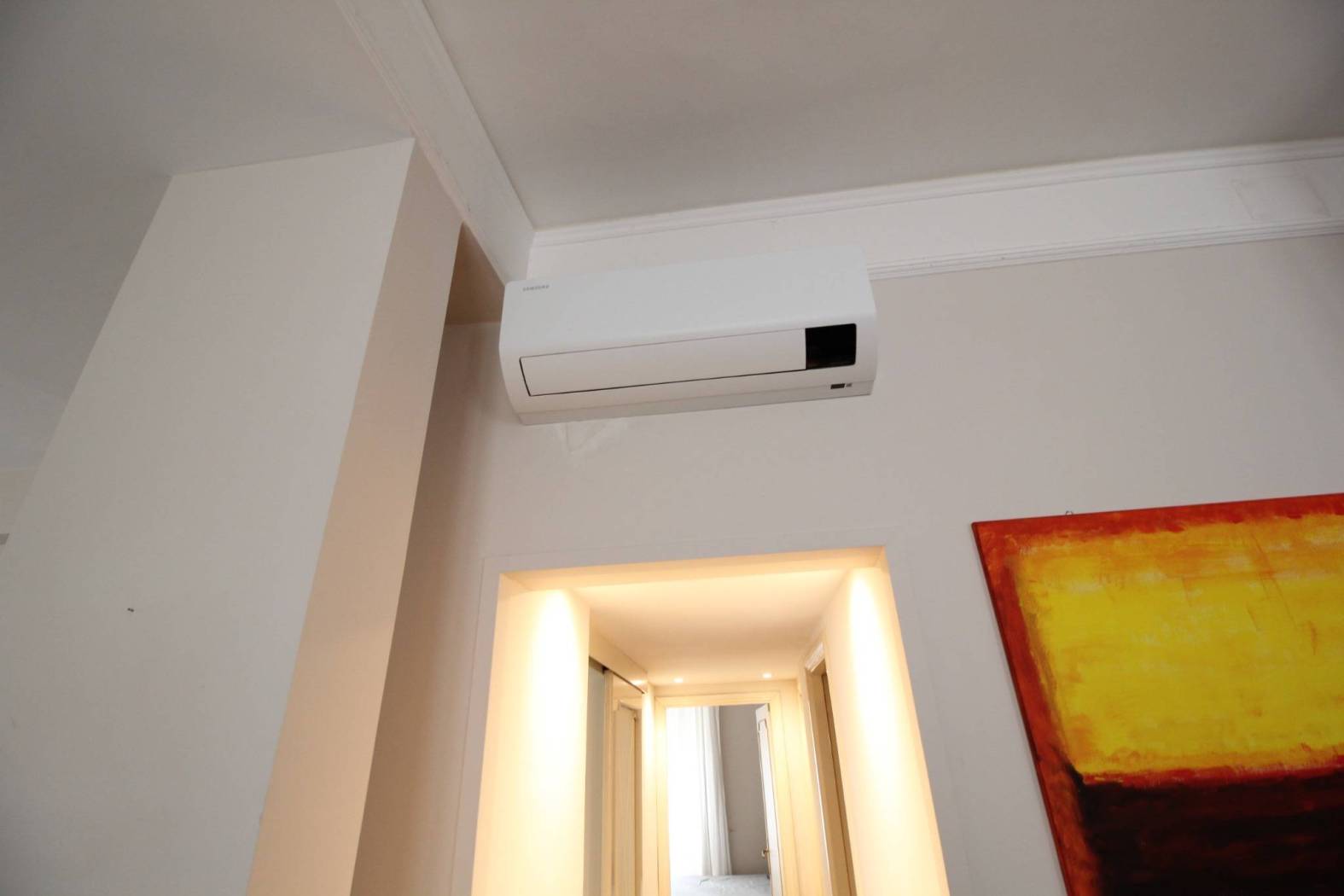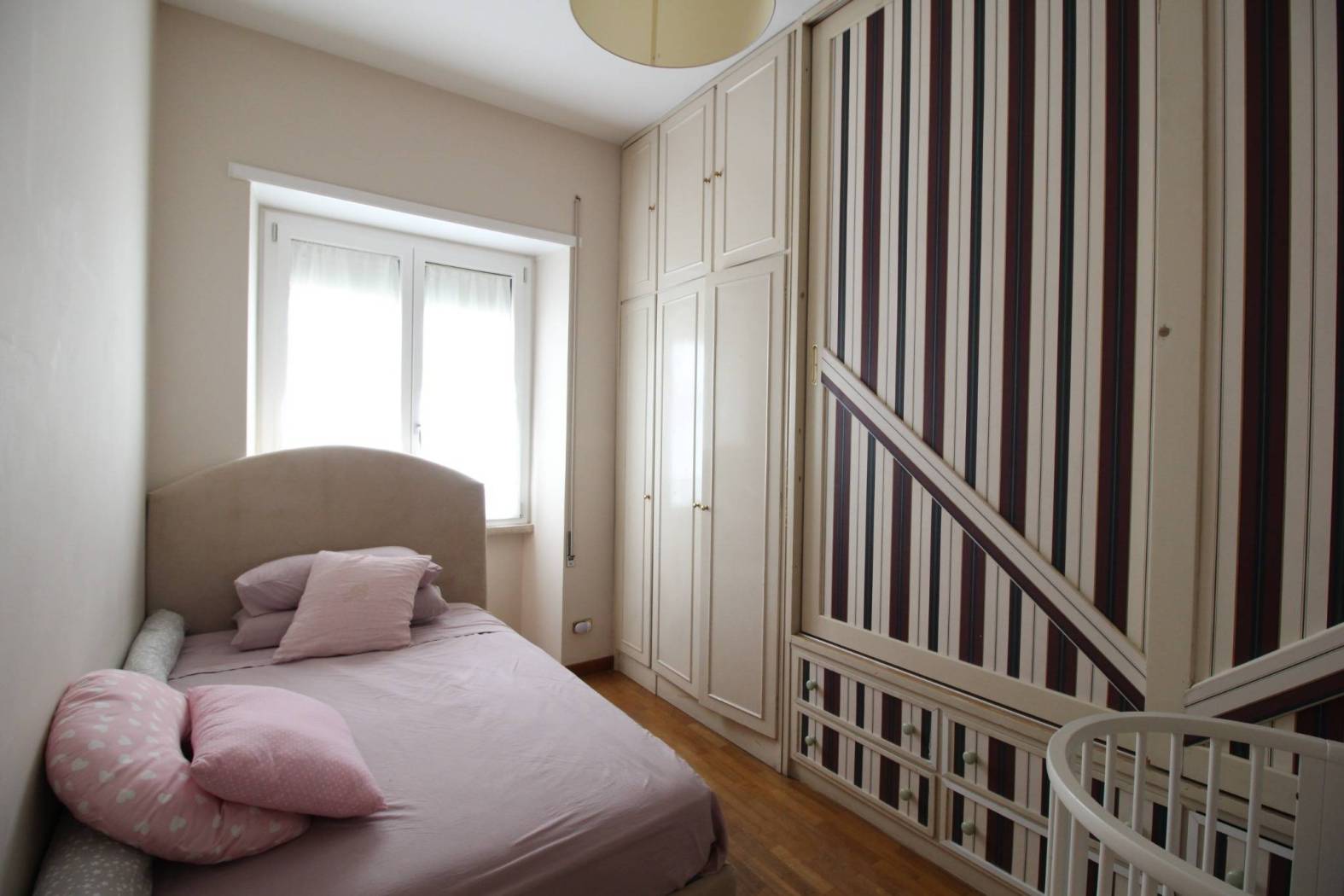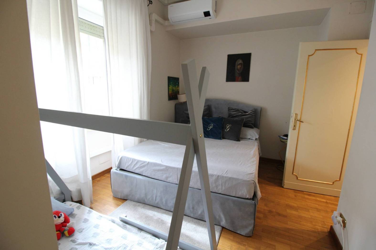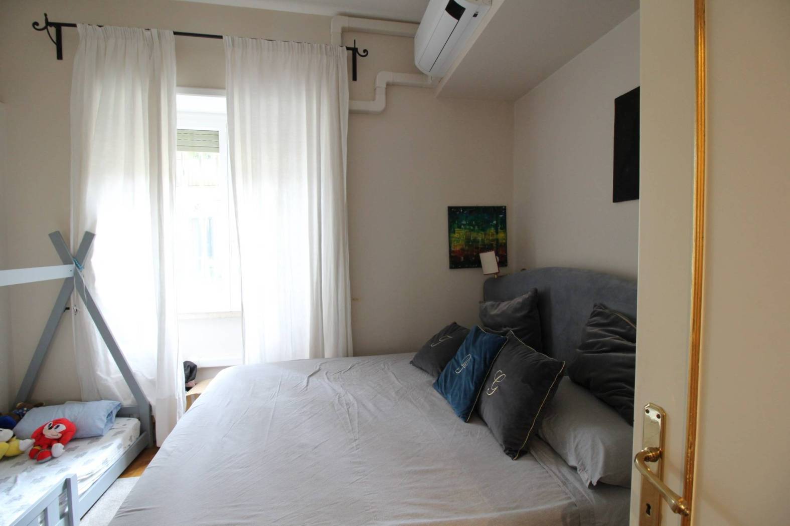 Completano la proprietà: pavimenti in legno, impianto di aria condizionata di nuova installazione nella camera matrimoniale e nel salotto, riscaldamento centralizzato, servizio di portineria disponibile presso il palazzo adiacente ed infissi con doppi vetri.