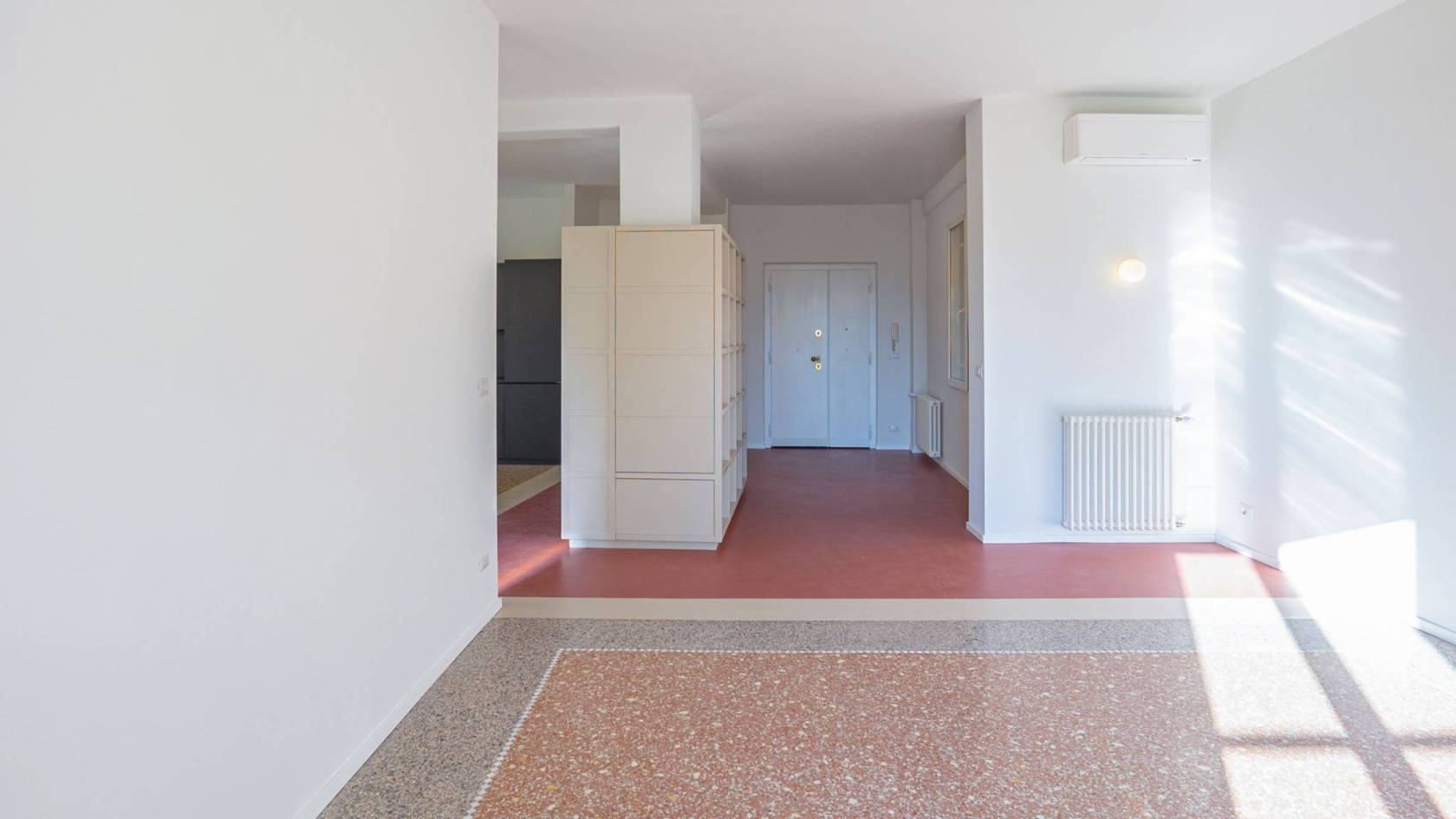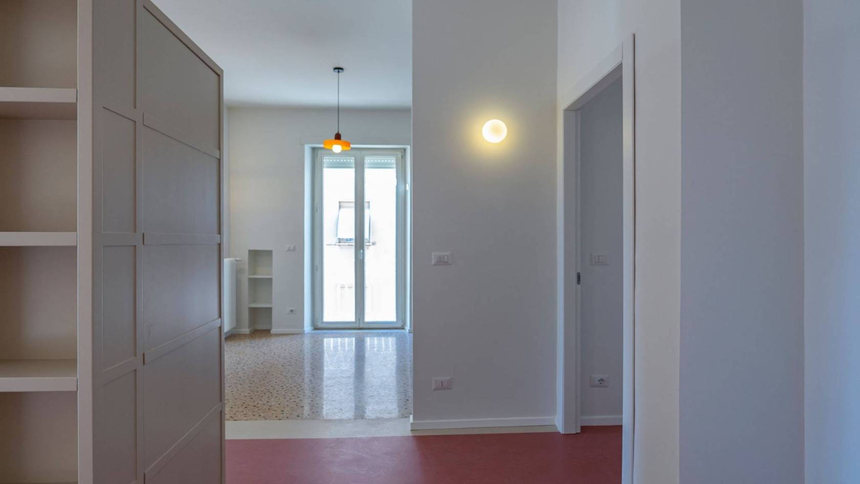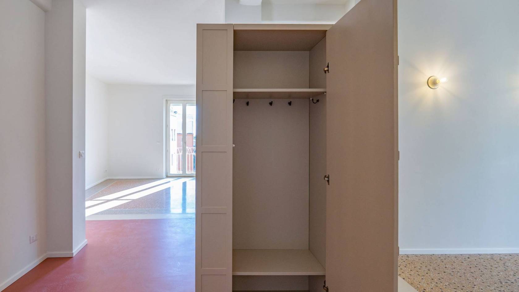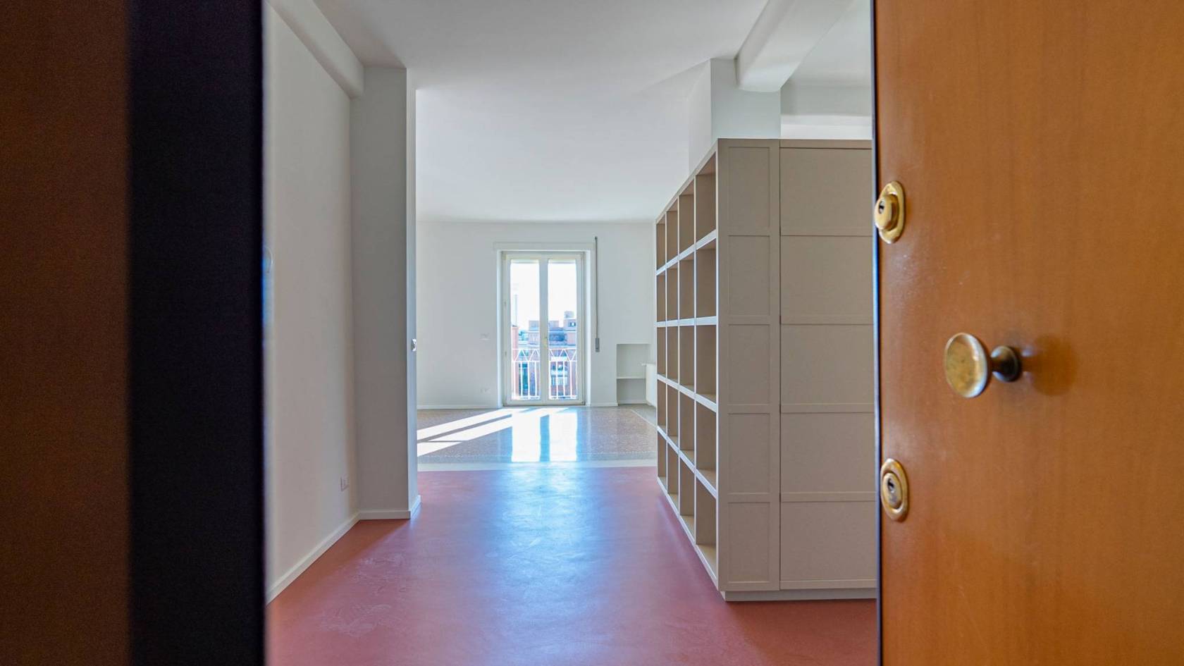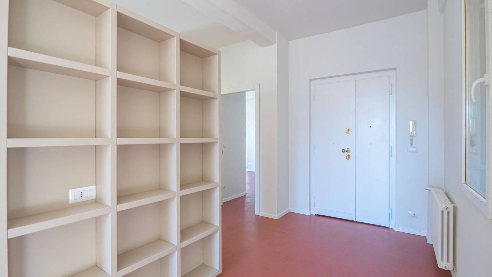 L'ingresso, spazioso e centrale, mette in comunicazione tutte le stanze ed è arricchito da un'armadiatura realizzata su misura.