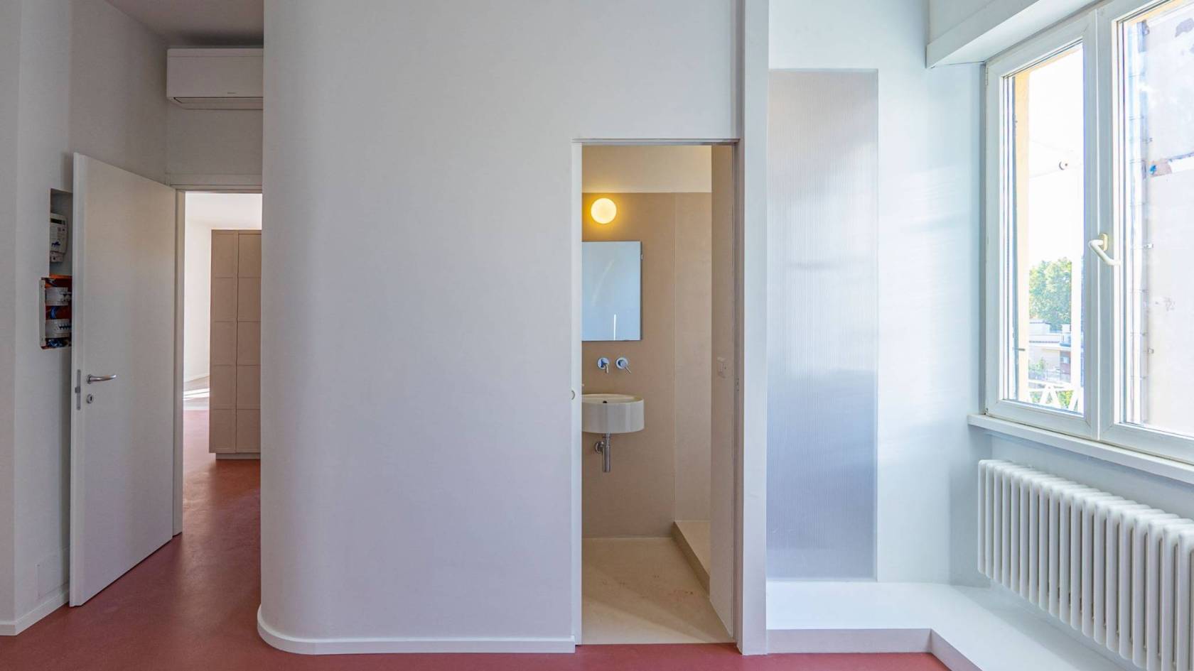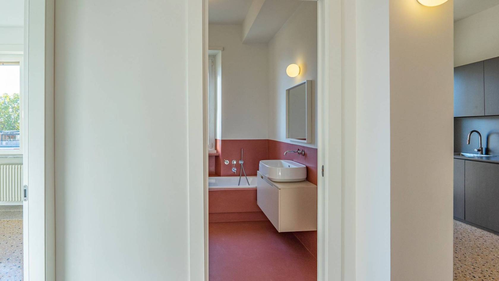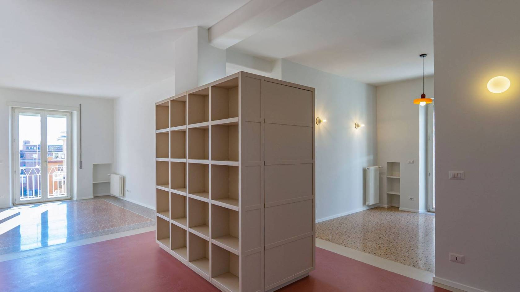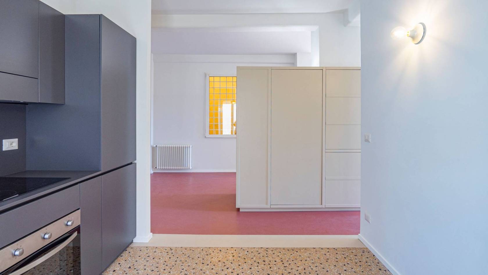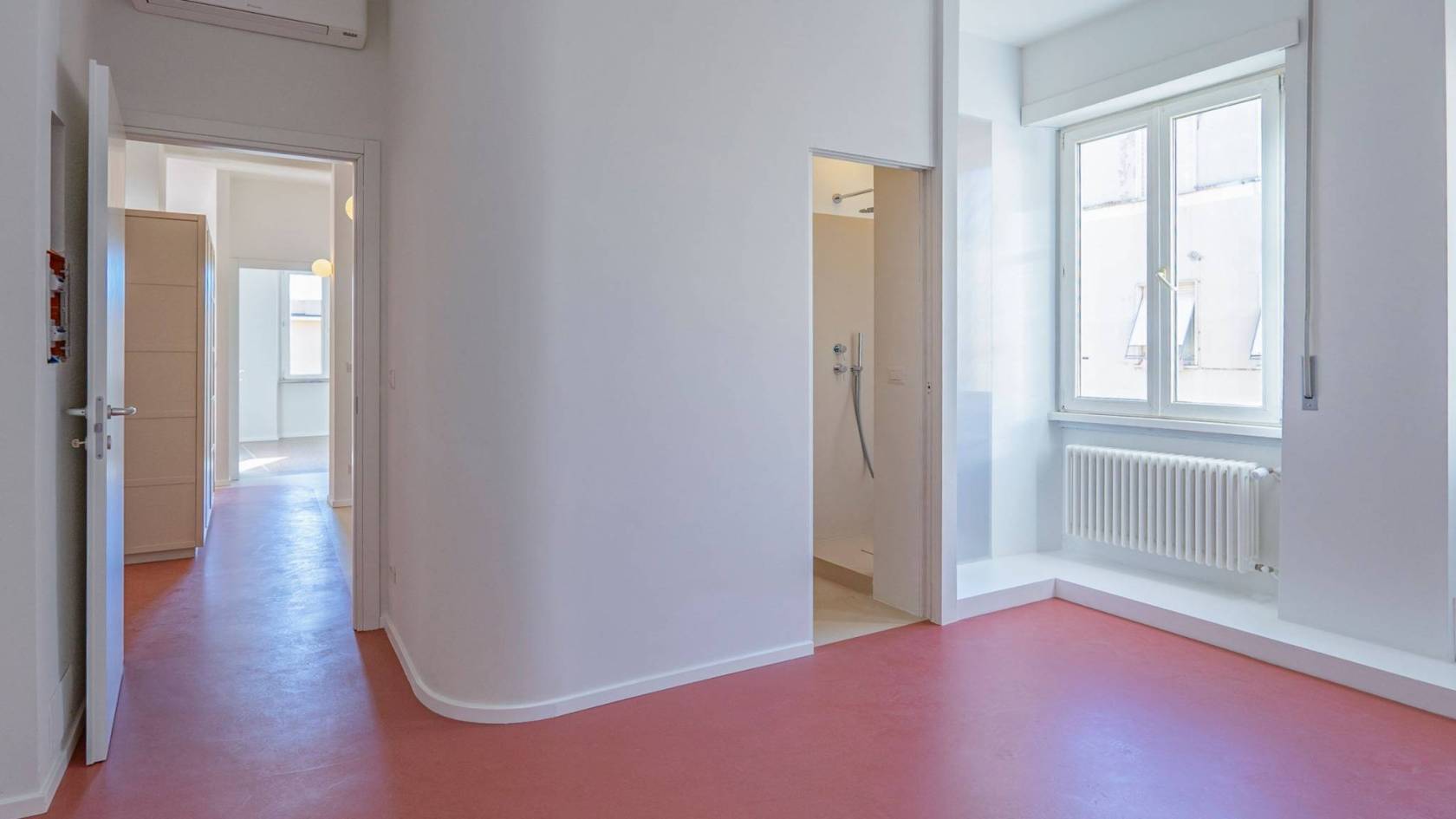 L'ingresso, spazioso e centrale, mette in comunicazione tutte le stanze ed è arricchito da un'armadiatura realizzata su misura.